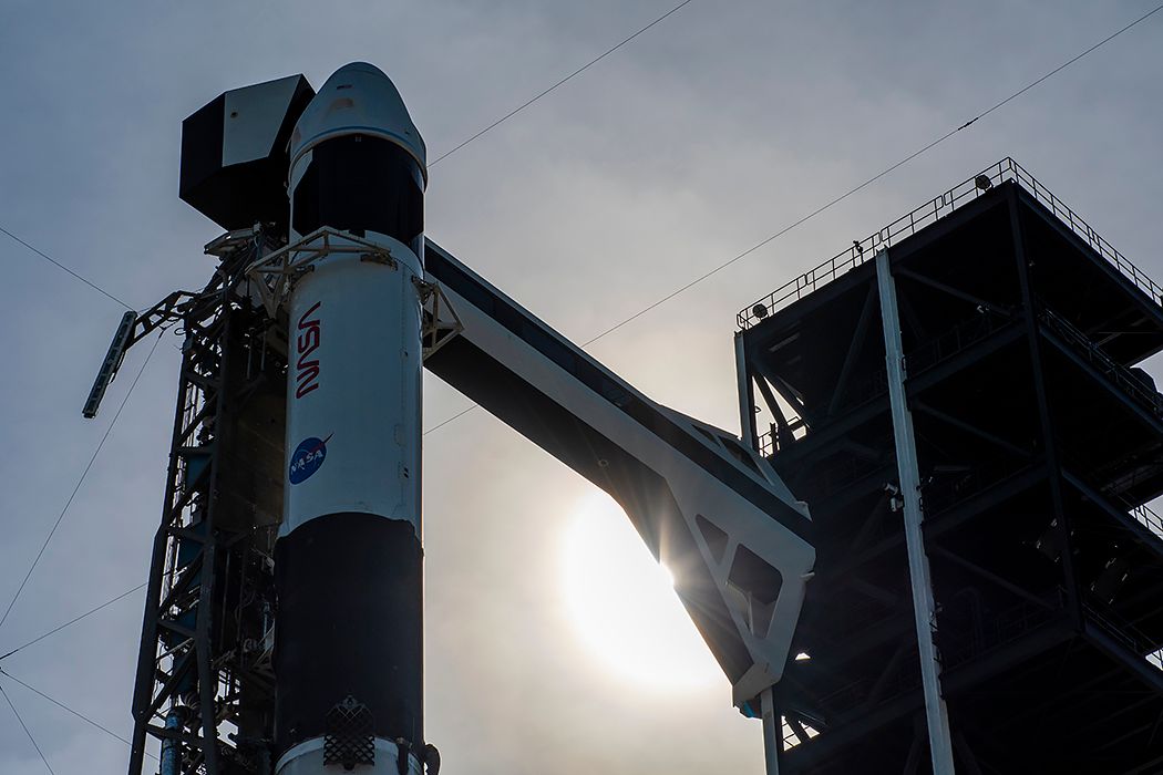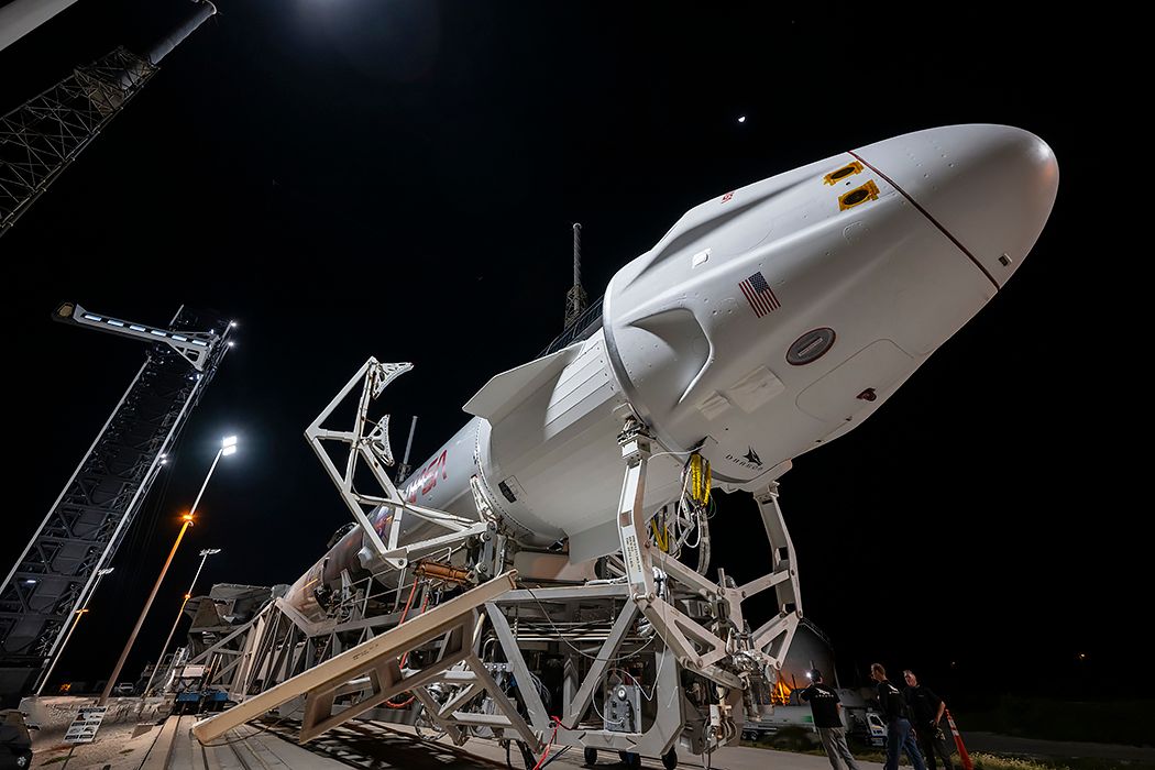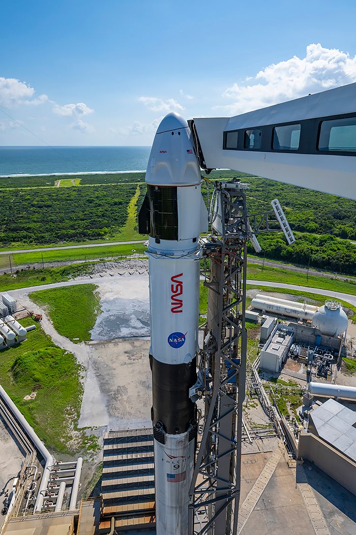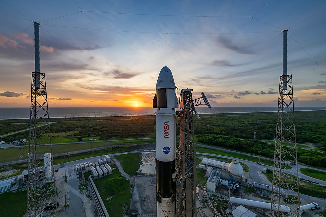 Also seen are the Polaris Dawn and Crew-9 Dragons ready for flight, side by side, and the crew arm on pad 40: