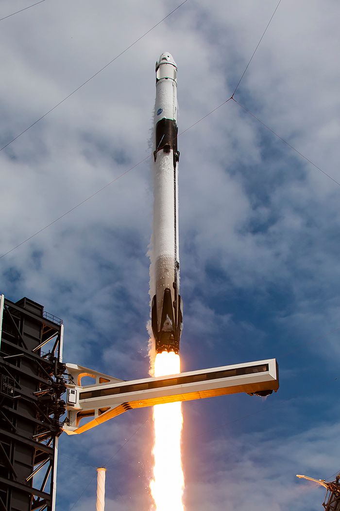 Astronaut Nick Hague and Russian cosmonaut Aleksandr Gorbunov head for the International Space Station. It marked the first ever crew launch from Pad 40.