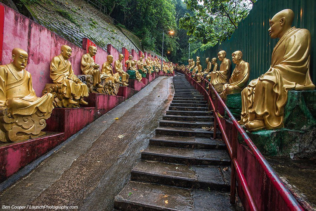 Hong Kong skyline panoramas, Lantau Island, Ten Thousand Buddhas Monastery, Dragon's Back hike, Victoria Peak photos