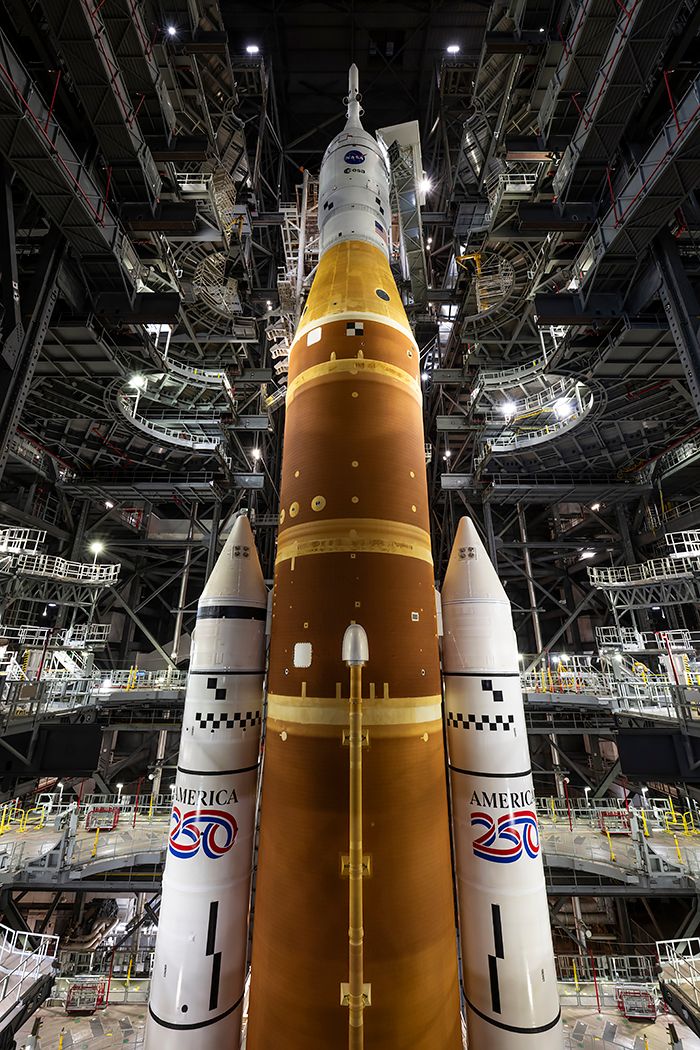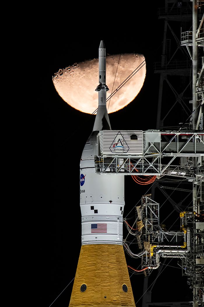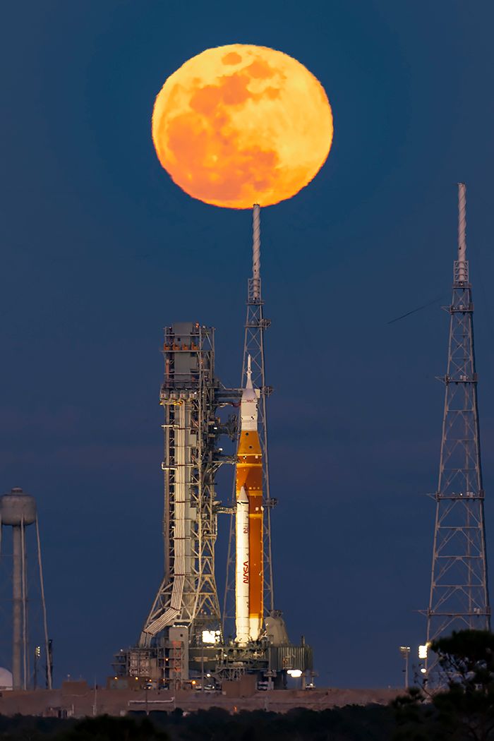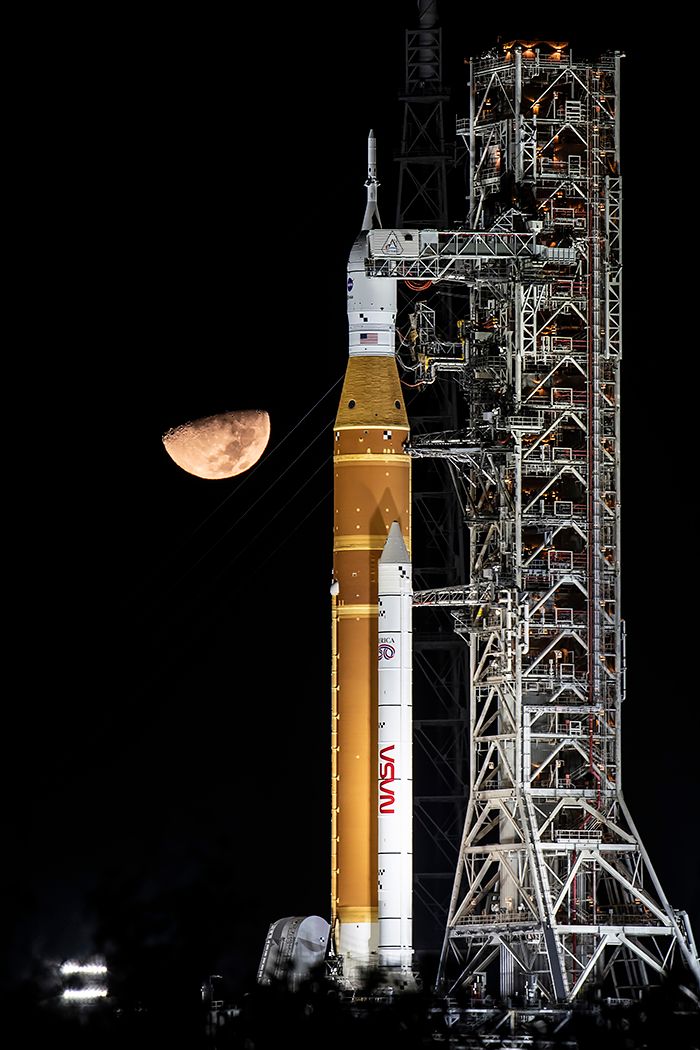 Artemis II launches four astronauts on the the first crewed mission beyond Earth orbit since Apollo 17 in 1972. The crew consists of commander Reid Wiseman, pilot Victor Glover, mission specialist Christina Koch and mission specialist and Canadian Space Agency astronaut Jeremy Hansen. It marks the second launch of the Space Launch System (SLS) rocket, standing 322 feet tall and producing 8.8 million pounds of thrust.